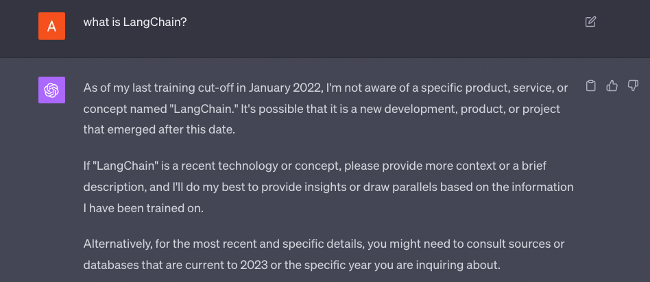예를 들어, 새로운 정보나 너무 복잡한 문제를 묻는다면, LLM은 그것을 정확하게 알지 못할 수 있어요. 여러 권의 책의 내용을 모두 합쳐서 답변하는 것 같은 복잡한 작업은 잘 수행하지 못해요.