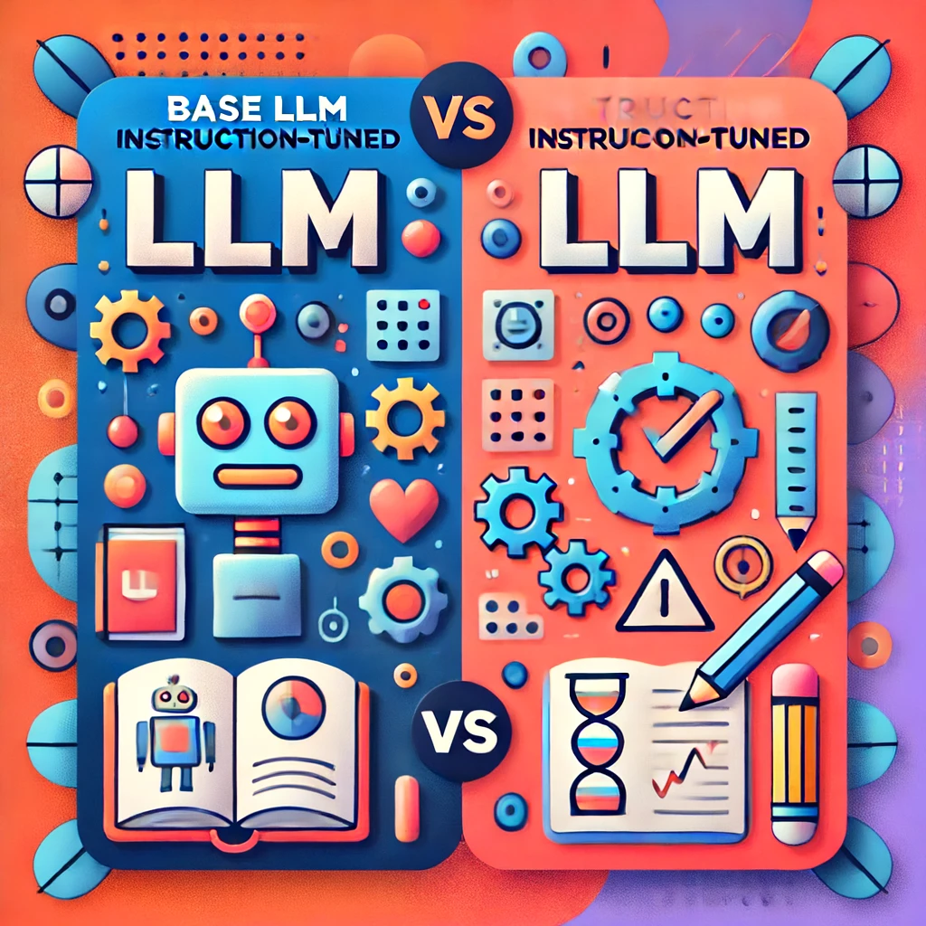 - Base LLM은 방대한 텍스트 데이터로 학습되어 인간 언어를 이해하고 생성하는 데 사용되는 일반 목적의 모델입니다. 🌍 다재다능하지만 특정 작업에 최적화되지 않았습니다. 📚