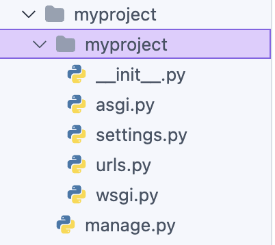 startproject 명령을 실행하면 몇 가지 파일과 디렉토리가 자동으로 생성됩니다.