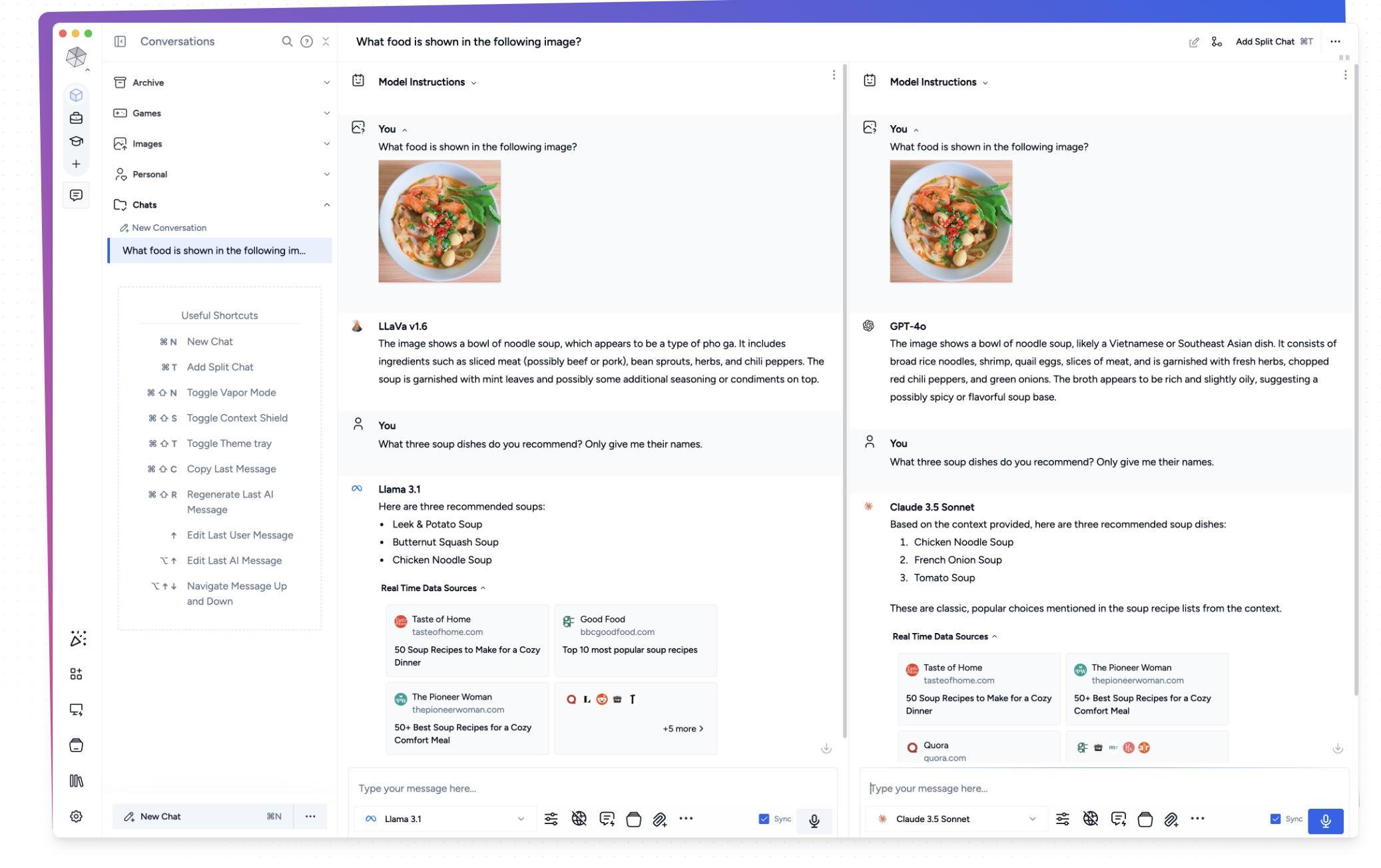- Msty는 여러 AI 모델의 응답을 실시간으로 비교할 수 있는 분할 채팅 기능을 제공합니다. 연구나 데이터 분석에 특히 유용하며, 여러 모델의 답변을 한눈에 볼 수 있어 빠르고 효율적인 비교가 가능합니다. 🔍✨