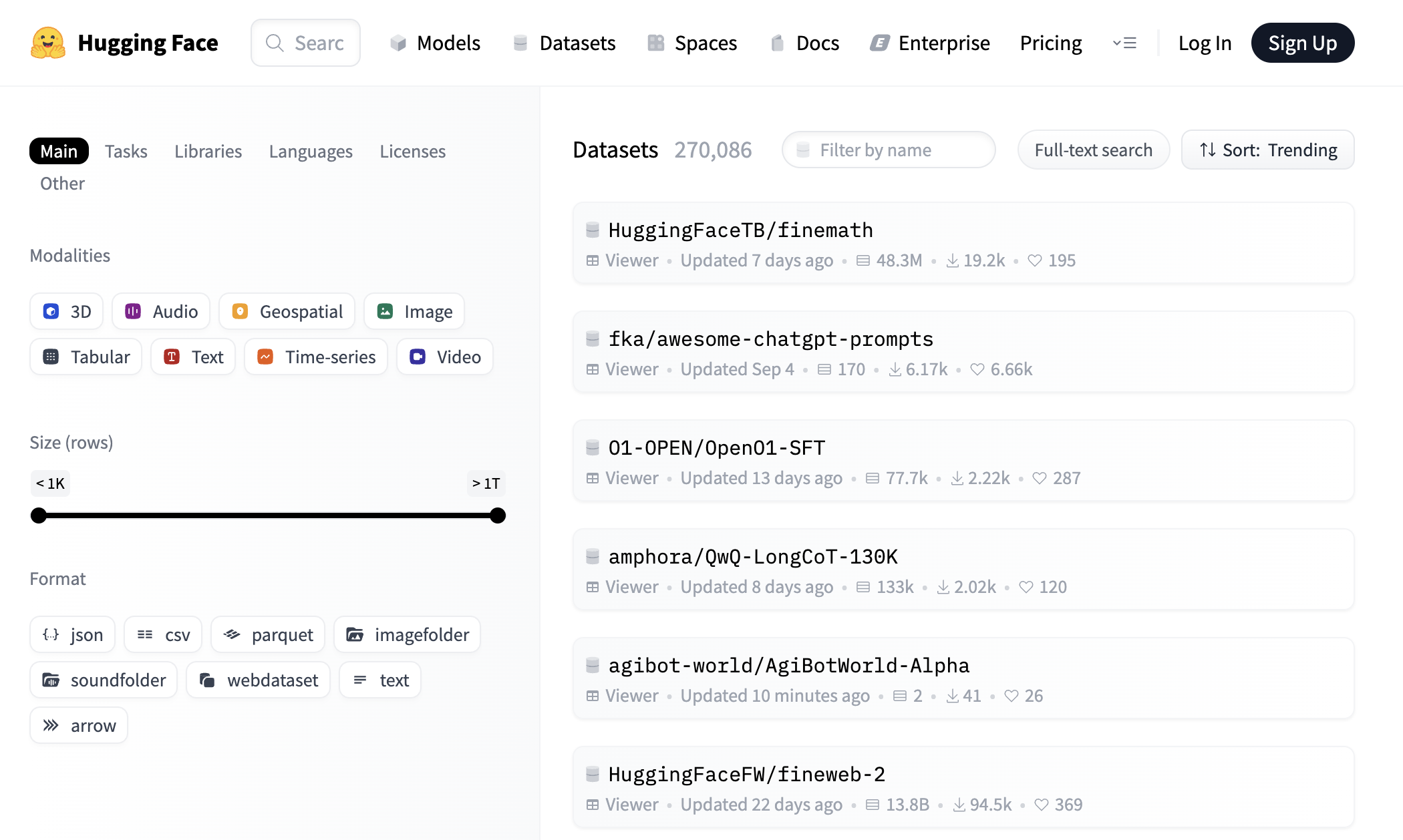 - 데이터셋 브라우징: 허브에서 데이터셋을 직접 검색하고 확인할 수 있습니다.