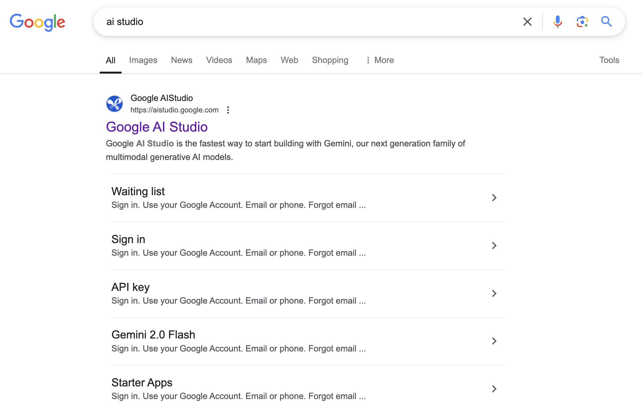 - Google AI Studio: 모델의 동작을 커스터마이징하거나, API 키가 필요할 때 사용.