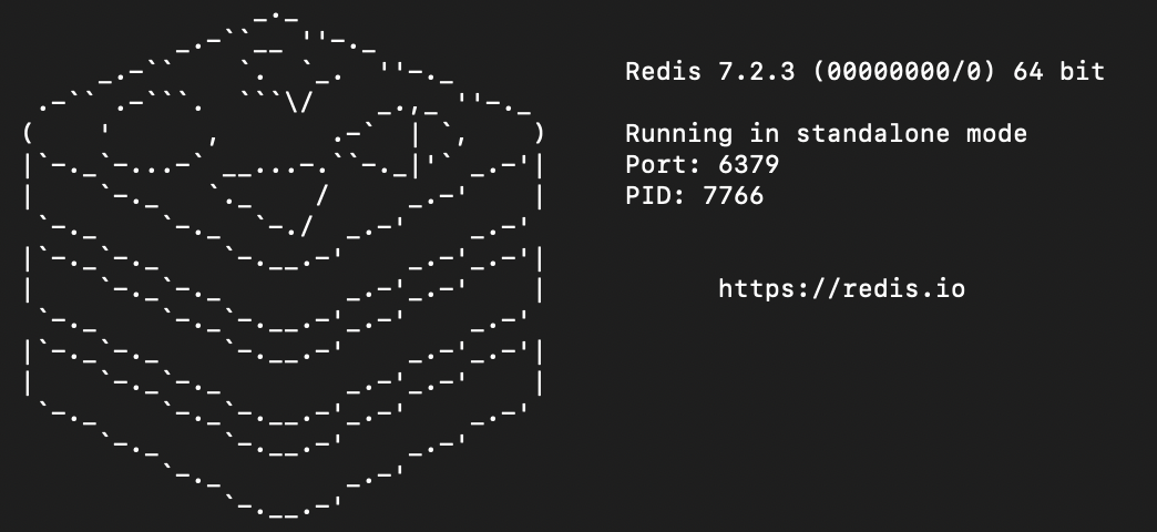 성공적으로 실행되면, Redis의 시작 로그가 표시되며, Redis는 foreground에서 실행됩니다.