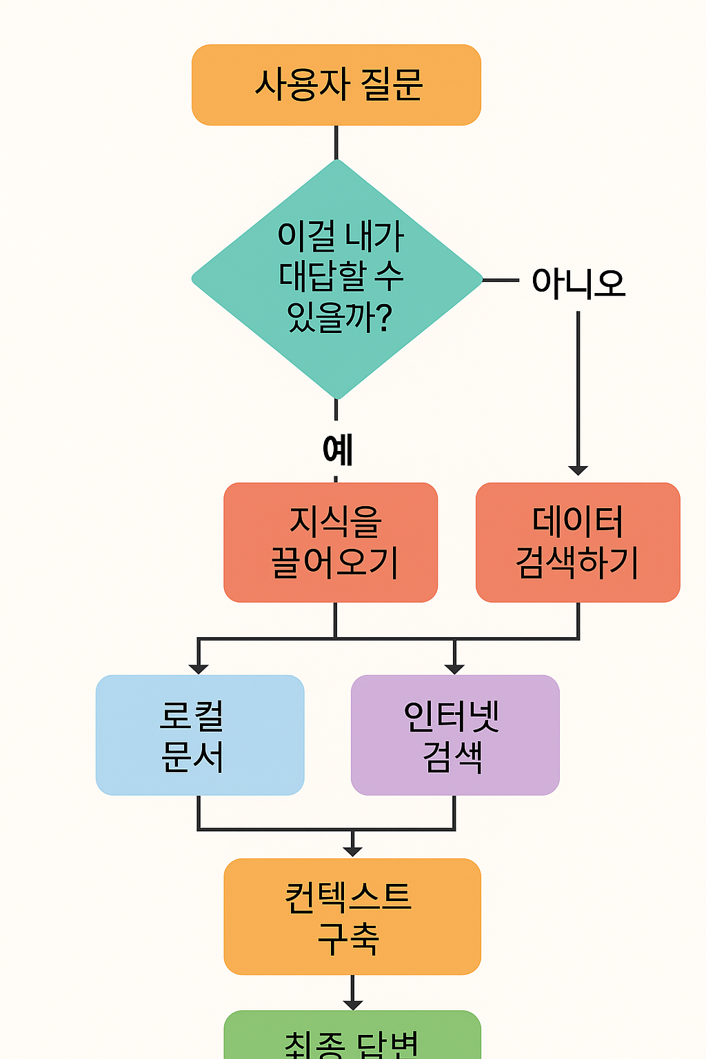 - 검색 에이전트가 로컬 데이터나 웹에서 정보 검색