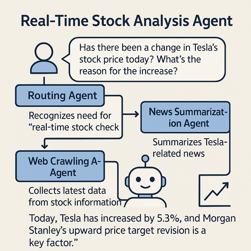 → 결과: "오늘 테슬라는 5.3% 상승했으며, Morgan Stanley의 목표가 상향이 주요 요인으로 분석됩니다."