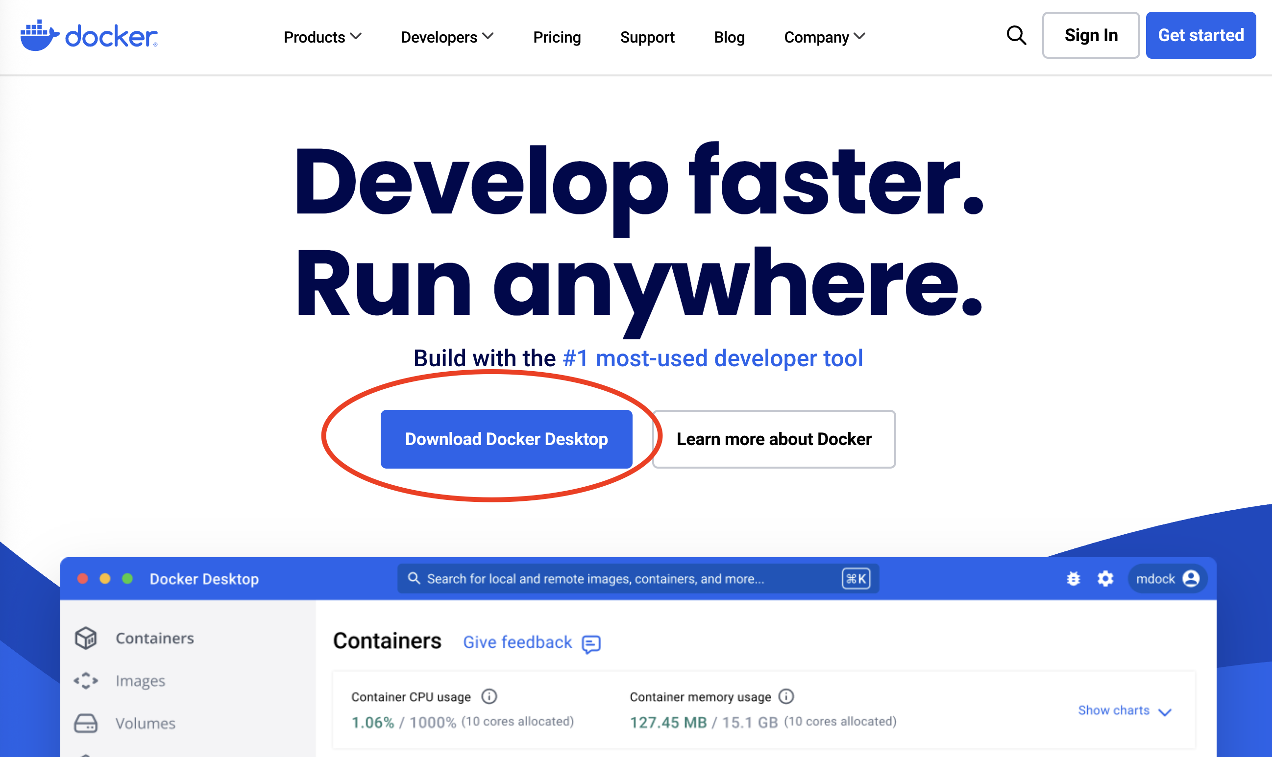 먼저, Docker 공식 사이트에 접속해 주세요. 자신의 컴퓨터에 맞는 버전(Mac, Windows)을 선택해서 Docker Desktop을 다운로드하고 설치합니다.