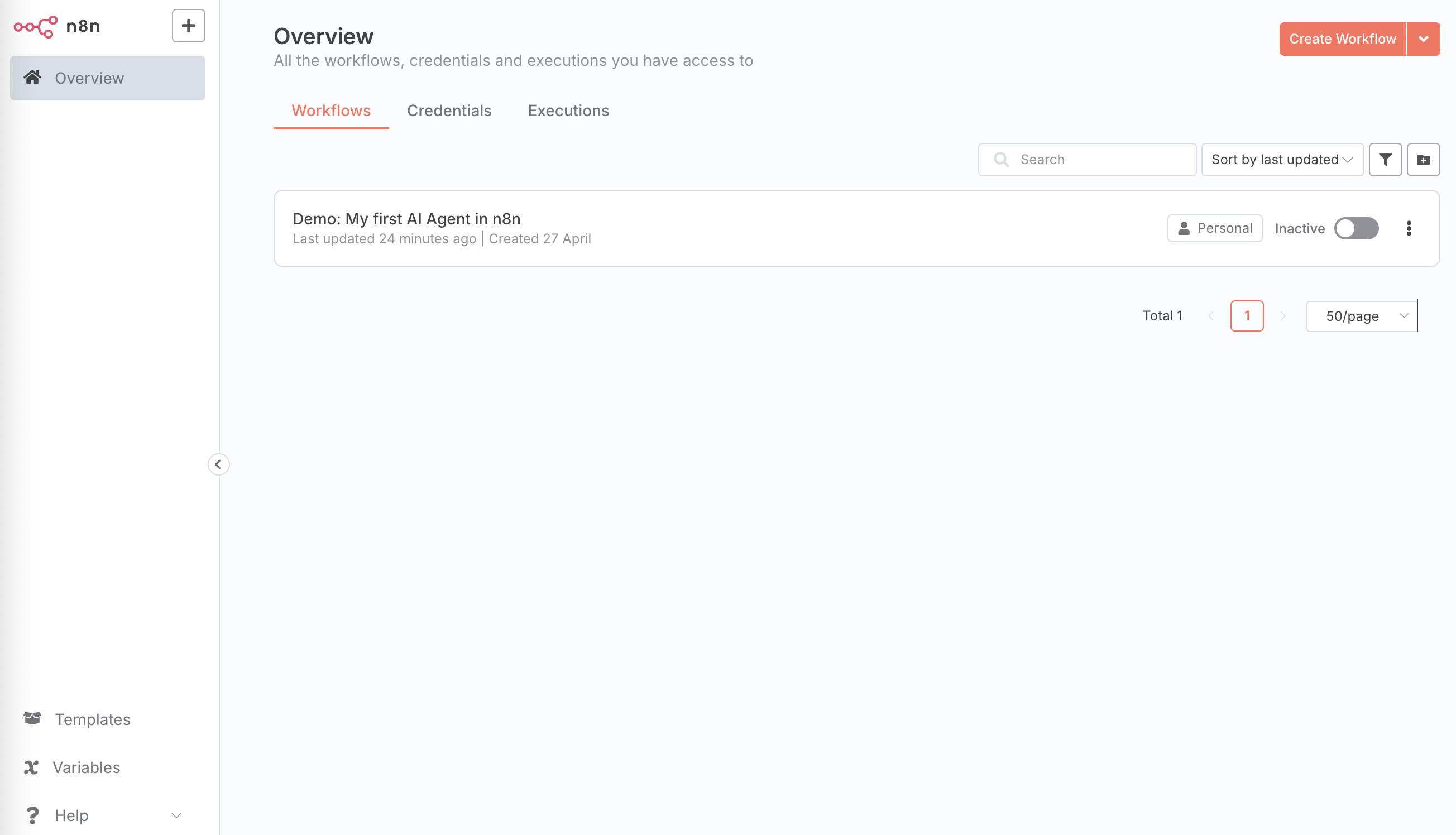 n8n 초기 화면이 뜬다면 성공입니다! 🎉