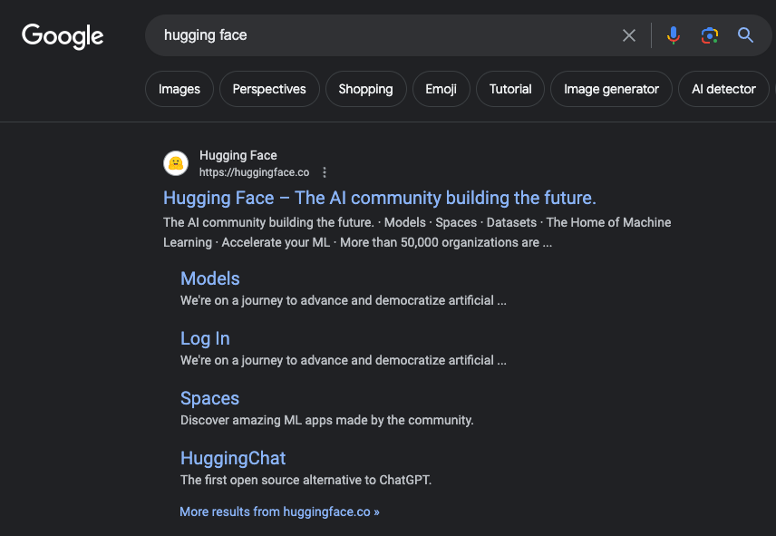 먼저 구글 검색창에 Hugging Face라고 검색해보세요