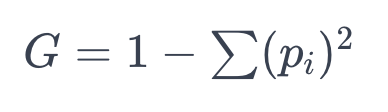 여기서 는 특정 클래스에 속하는 항목의 비율을 나타냅니다. 📈 이 공식은 데이터 집합의 모든 클래스에 대해 이루어지며, 값이 클수록 지니 불순도는 낮아져 데이터 집합의 순도가 높다는 것을 의미합니다. 📉